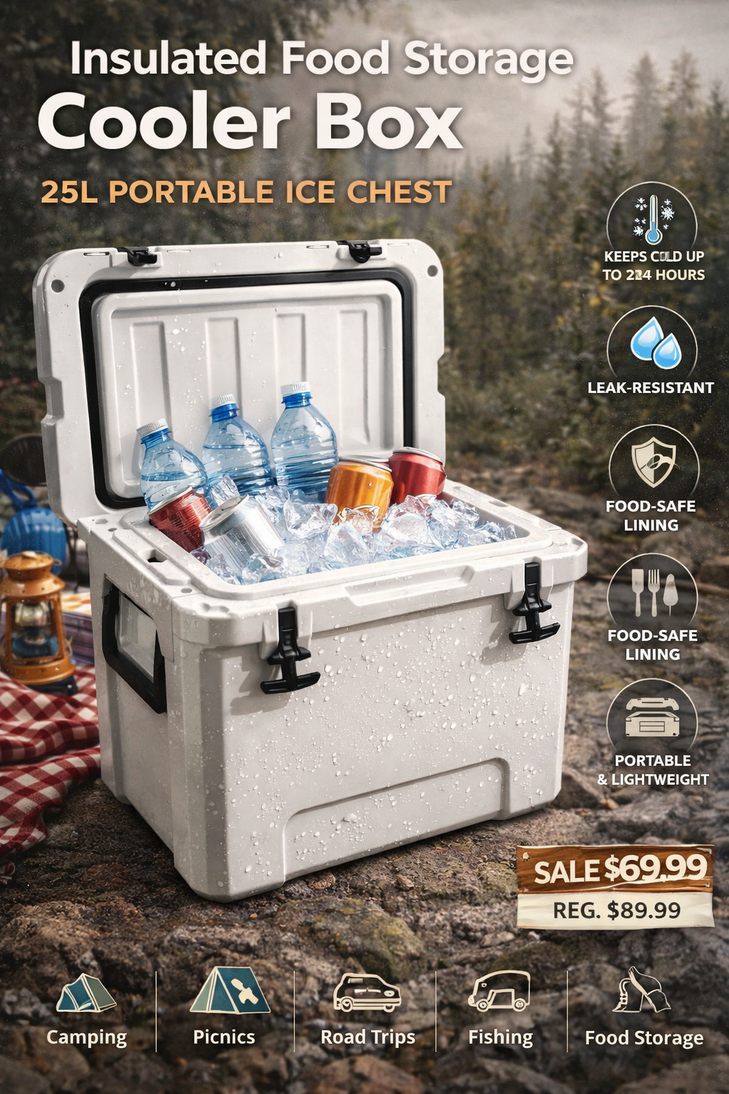 • Insulated Food Storage Cooler Box – 25L Portable Ice Chest